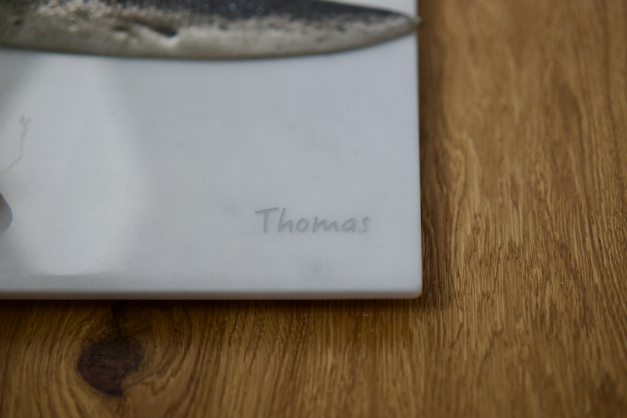 Diese beschichteten Speckbretter sind die Lösung für Kunden, die auf der Suche nach einem "Speckbrett" aus Marmor sind. Die Säure- und fettresistente Beschichtung schützt den Marmor und ermöglicht das Schneiden mit Lieblingsmessern ohne Sorgen. Individuelle Beschriftung und Farbauswahl sind möglich.
